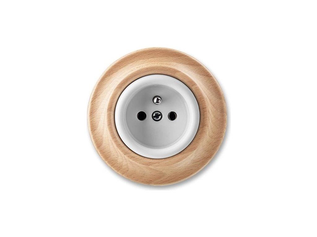 Kompletní zásuvka ABB DECENTO je bílá keramická zásuvka s dřevěným rámečkem v retro stylu určená pro domovní i kancelářskou elektroinstalaci. Bílá kulatá retro zásuvka z porcelánu s dřevěným rámečkem se stane noblesním doplňkem každého interiéru.