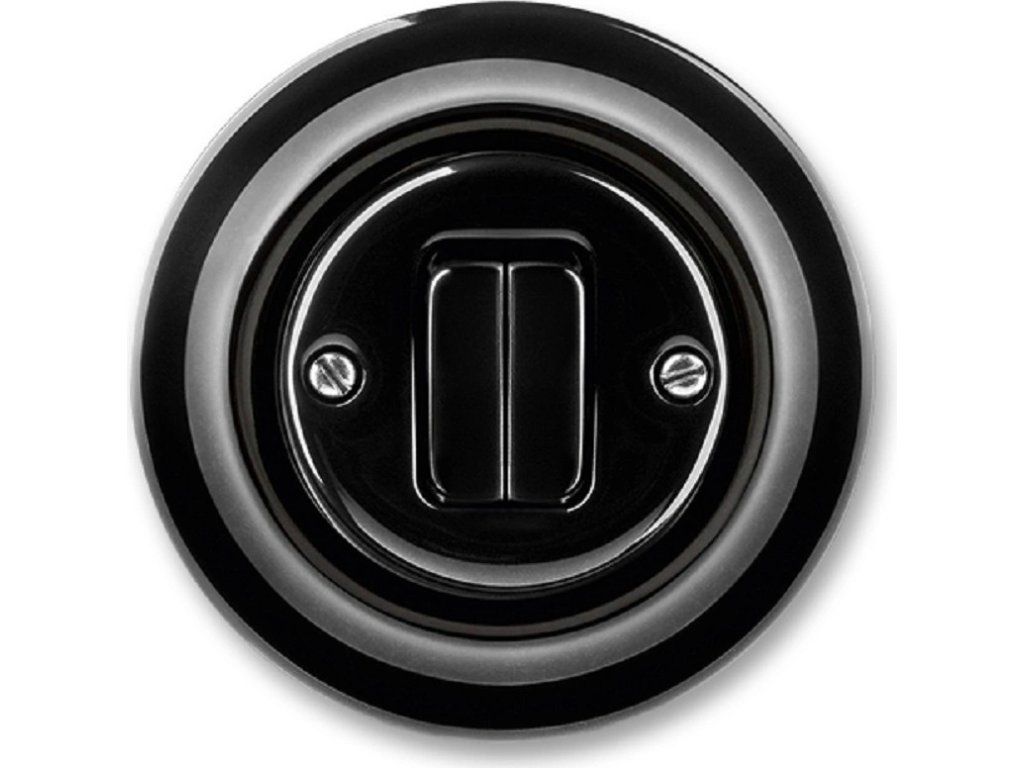 DECENTO Přepínač sériový v barvě černá z řady Decento (EAN: 8592624084303) je 2-páčkový kolébkový spínač určený pro montáž pod omítku s vestavnou hloubkou 17 mm a krytím IP20.