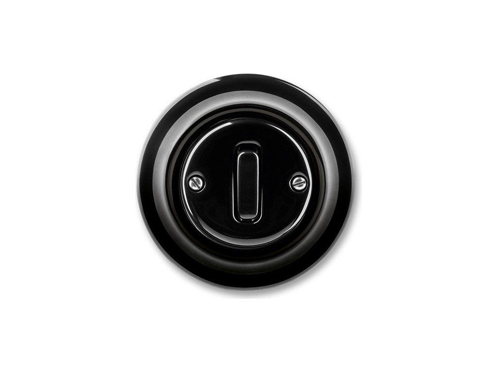 Černé porcelánové tlačítko 6/0 z designové řady zásuvek a vypínačů ABB Decento. Jedná se o vkusný a neotřelý přepínací ovladač se svorkou N, který koupíte kompletní – tedy kombinaci nádherného kulatého krytu a funkčního, moderního přístroje. Unikátní řada zásuvek a vypínačů ABB Decento se výborně hodí jak do historických rekonstrukcí, tak i interiérů ve stylu Provence.
