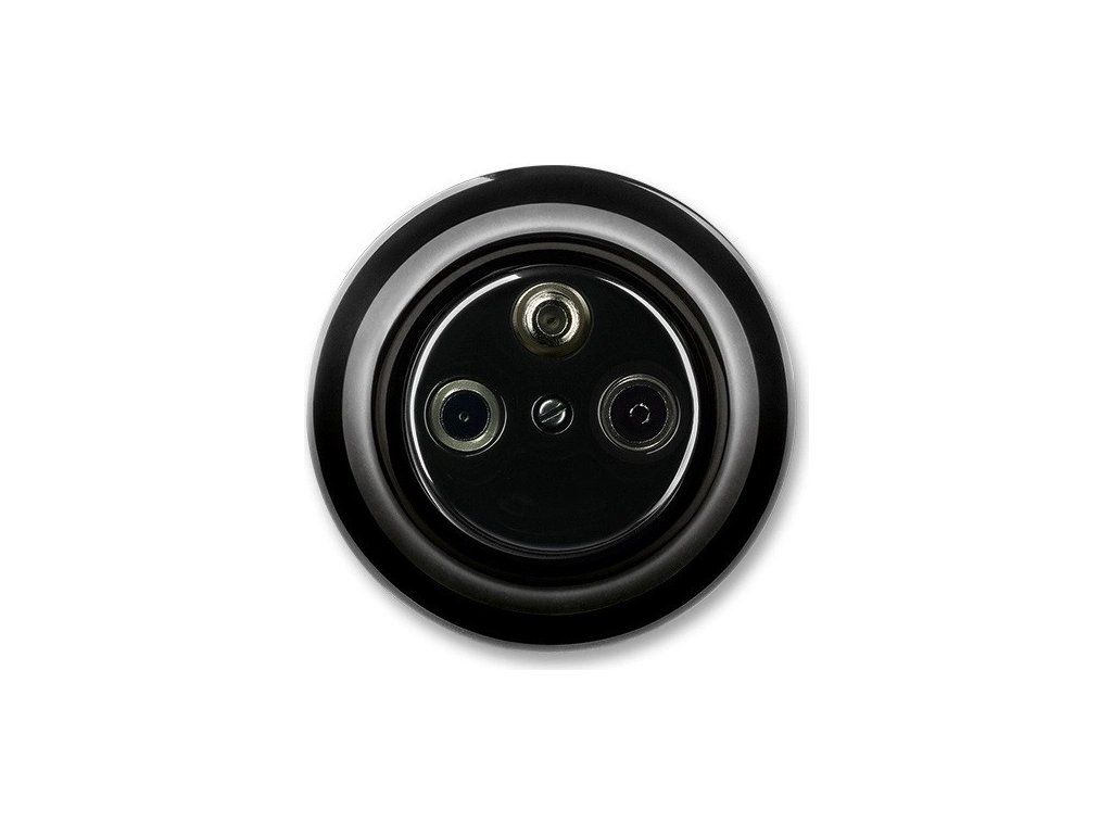 Kompletní anténní zásuvka TV-R-SAT ABB DECENTO je černá keramická zásuvka v retro stylu pro rozvod televizního, rádiového a satelitního signálu. Je určená pro domovní i kancelářskou elektroinstalaci. Černá kulatá retro zásuvka z porcelánu se stane noblesním doplňkem každého interiéru.
