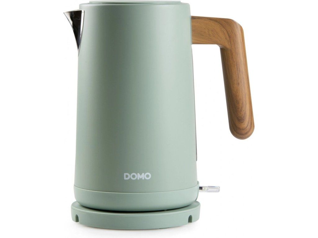 Rychlovarná konvice DOMO DO9282WK kombinuje matnou olivově zelenou barvu s detailem v dekoru dřeva. Nerezové tělo působí solidně a snadno se udržuje, takže konvice vypadá dobře i po častém používání a ladí s moderními spotřebiči.