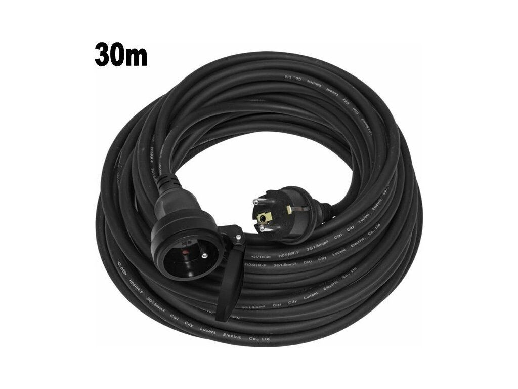(BAL:4ks) Pohyblivý přívod-spojka černé barvy je určený pro extrémní zátež a venkovní použití. Díky gumové izolaci a neoprenovému plášti kabel odolá vyšší vlhkosti, olejům, mechanickému zatížení a snese extrémní pracovní teploty od -25°C do +60°C.délka: 30m 250V, 16A max, IP44.kabel: H07RN-F, 3x1,5 mm2typ izolace/plášť guma / neoprenmax. zátěž: 3680WCertifikace: CE, ROHs