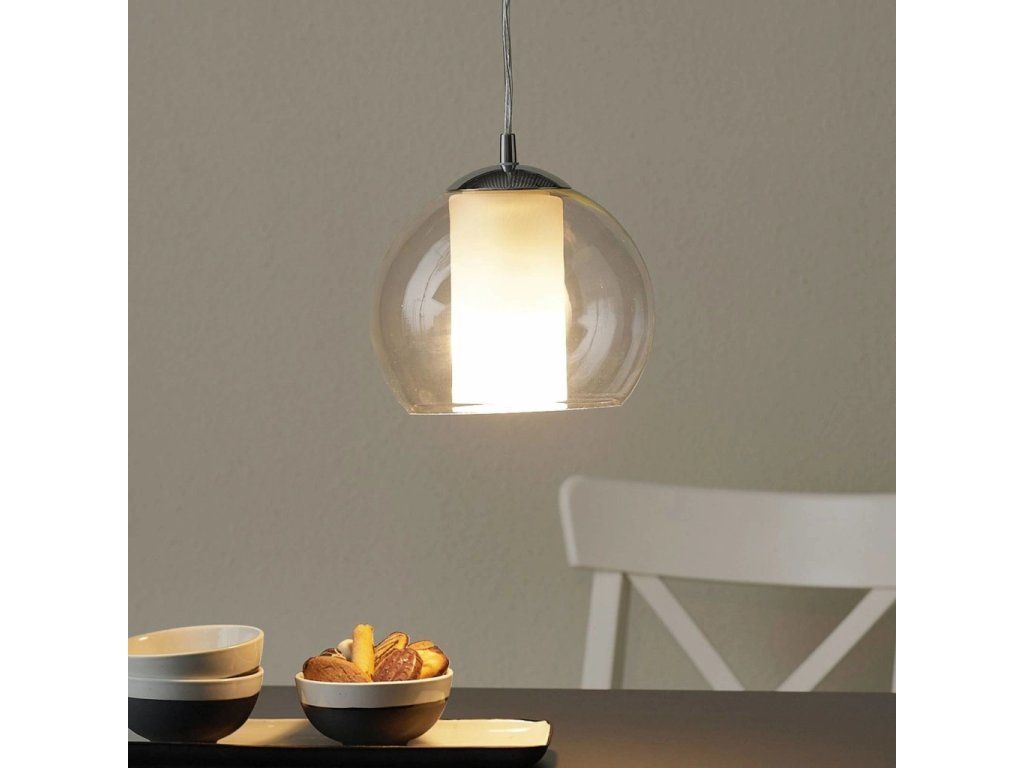 Svítidlo staví na minimalistickém designu: lesklý chrom a bílý povrch v kombinaci se skleněným prvkem podtrhují moderní styl bez zbytečných detailů. Díky jednoduché formě lustr nenaruší interiér, ale dodá mu čistý a elegantní dojem vhodný do jídelny i obývacího pokoje.
