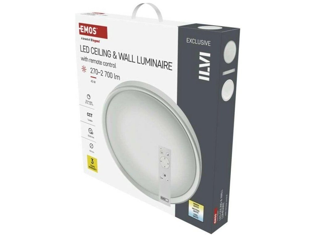Přisazené stropní svítidlo ILVI je vhodné k osvětlení chodeb interiérů, vstupních prostor či obývacích pokojů. Osvětlení kulatého tvaru je vyrobeno z kombinace ocelového plechu a plastu. Mléčný plastový difuzor vyzařuje světlo pod širokým úhlem 120°. Barvu světla si můžete libovolně regulovat pomocí ovladače nebo vypínače. Ovládání barvy světla možné také pomocí vypínače, opětovným vypnutím a zapnutím svítidla. Časovač dovoluje nastavení vypnutí světla po 30 a 60 minutách. Ambient efekt - podsvětlení, které vykresluje na stropě zajímavé efekty. Díky funkci nočního světla vytvoříte atmosféru pro usínání v ložnici či dětském pokoji. ILVI je vybaveno typem ochranného krytí IP20. Snadná montáž a optické zvětšení prostoru. Dálkový ovladač umožňuje ovládání více světel EMOS ILVI najednou. Typ difuzoru - mléčný. Světelná účinnost - 60 lm/W.
