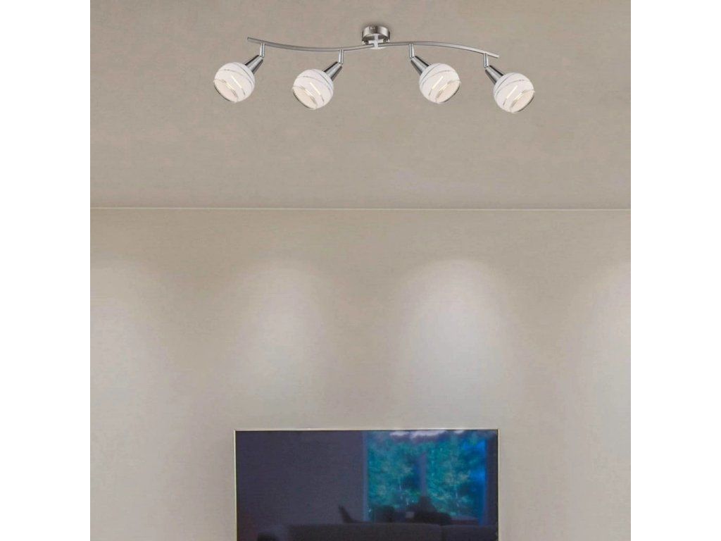Stropní LED svítidlo Globo 54341-4 nabízí 4 bodové lampy s paticí E14 a dodávané úsporné LED žárovky o příkonu 4 × 5 W, které dohromady dávají 1296 lm při 3000 K. Kombinace saténového skla a kovového nikl‑mat tělesa podtrhuje elegantní vzhled; svítidlo je určeno do suchých vnitřních prostor (IP20). Globo 54341-4 vytváří rovnoměrné, teplé osvětlení do středně velkých místností a současně šetří energii díky dlouhé životnosti LED.