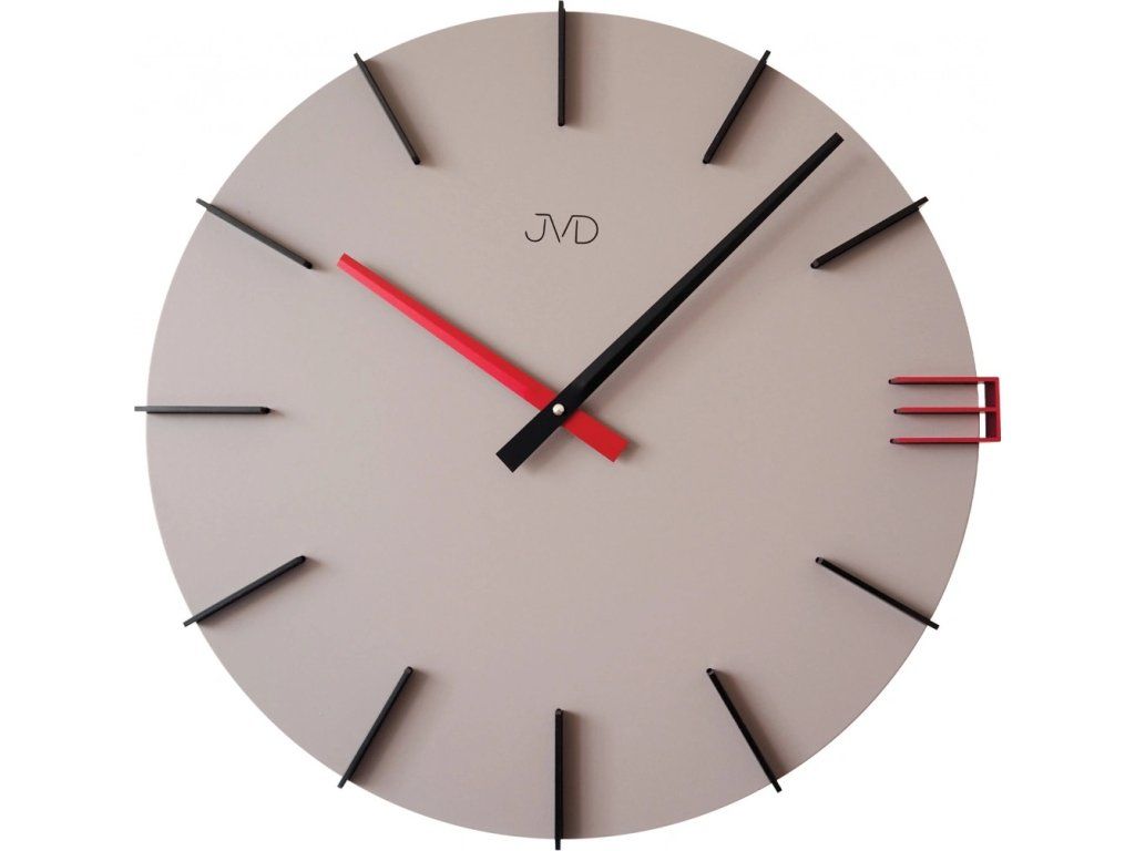 Moderní designové hodiny v kombinaci s minimalistickými indexy.