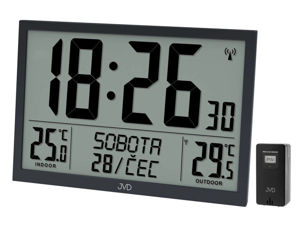 Teploměr (vnitřní a venkovní teplota čidlem) 12-ti nebo 24-hodinový denní režim