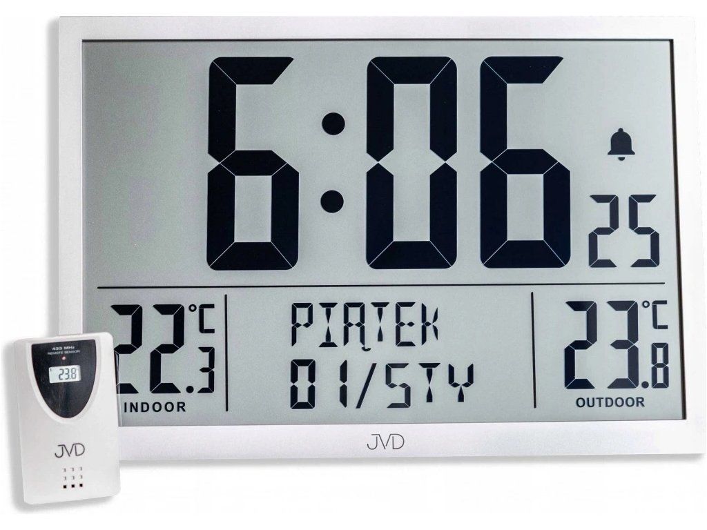 - Funkce: měření vnitřní i venkovní teploty bezdrátovým senzorem s dosahem až 70m, datum, den v týdnu, budík, zobrazení 12/24 formátu, 8 jazyků (CZ)