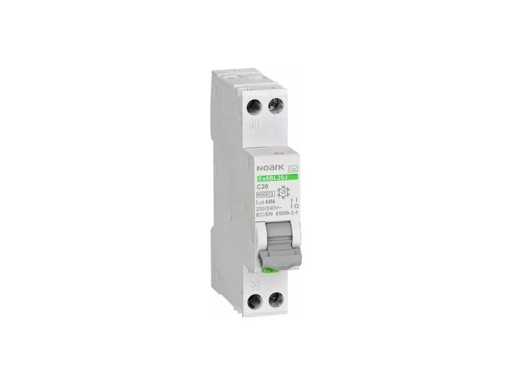 - Jednomodulový proudový chránič RCBO Ex9BL20J 1PN B10 30mA A (EAN: 8592765174710) kombinuje proudovou ochranu a jistič s vybavovacím proudem 0,03 A pro střídavé napájení (AC).