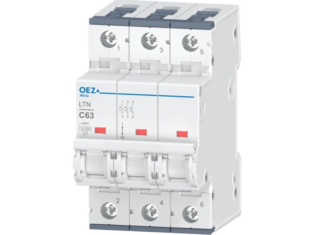 In 63 A, Ue AC 230/400 V / DC 216 V, charakteristika C, 3pól, Icn 10 kA
