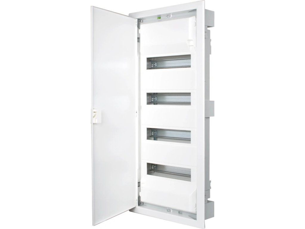 Doplňující informace pro zapuštěnou montáž neprůhledné plechové dveře, počet řad 4, počet modulů v řadě 14, krytí IP30, PE+N, barva bílá, materiál : ocel-plast