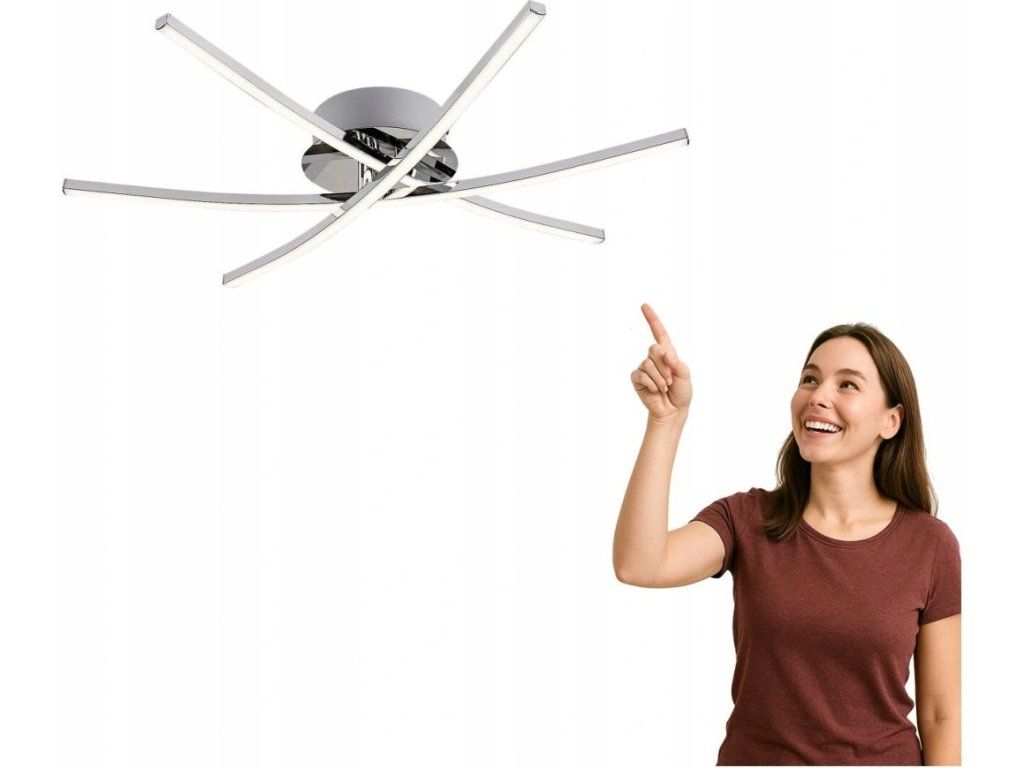 Stropní svítidlo Cyclone určené do moderních obýváků. Doporučujeme jej těm, kteří mají rádi lesklé chromové povrchy a namísto decentních stropních svítidel splývajících s rovinou stropu by zvolili nápadnější a osobitější model. Kovové svítidlo Cyclone ve tvaru hvězdy je doplněno bílými plastovými kryty a lze jej připevnit na strop pomocí malého kulatého podstavce. Tři dlouhé, jemně zakřivené, protínající se prvky lampy jsou připevněny k dekorativnímu podstavci a tvoří šesticípou zářící hvězdu. Stropní svítidlo má zabudovaný LED světelný zdroj energetické třídy G, s výkonem 21 W, svítivostí 1450 lumenů se stínítkem, 2250 lumenů bez tímndla a životností 20 000 hodin. Barevná teplota svítidla je 4000 K, tzn. svítí přirozeným bílým světlem a vytváří moderní, čistý efekt v obýváku. Rozměry Cyclone: průměr 570 mm, vzdálenost od stropu 90 mm, jeho montážní průměr 120 mm.