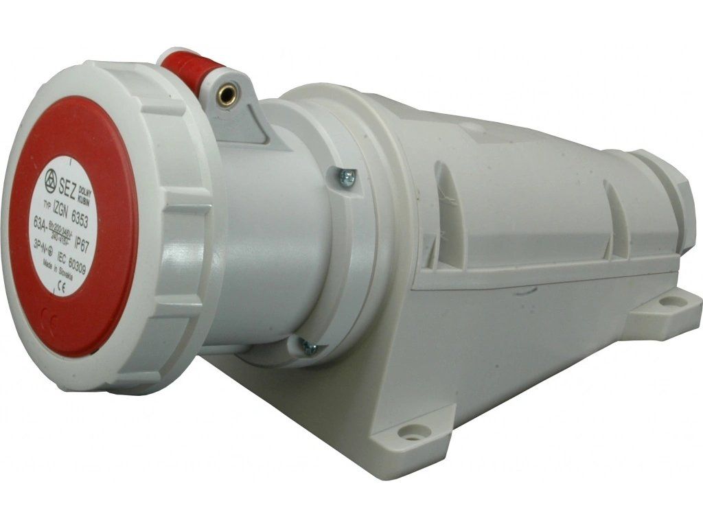 Průmyslová nástěnná zásuvka SEZ IZG 6343 je 4-pólová nástěnná zásuvka pro jmenovité napětí 400 V s proudem 63 A a venkovním krytím IP 67.