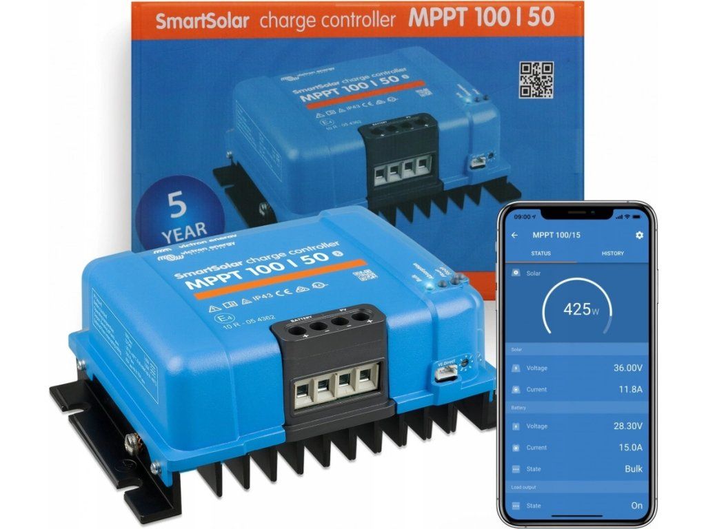 Jako důkaz vysoké kvality na všechny MPPT regulátory poskytuje Victron Energy prodlouženou plnou záruku 5 let. MPPT solární regulátory Victron Energy patří mezi absolutní světovou špičku v tomto oboru. Nabízí ultra rychlé MPPT sledování, které zajišťuje maximální možné solární zisky. Zejména při zatažené obloze s častou změnou intenzity osvitu jsou solární zisky o 30% vyšší oproti klasickým PWM regulátorům nebo o 10% vyšší oproti pomalejším MPPT regulátorům. Maximální výkon solárních panelů je u 12 V systémů 700 Wp, u 24 V systémů 1400 Wp. V případě překročení těchto hodnot se regulátor nepoškodí, ale pouze automaticky zredukuje přicházející výkon od panelů na přijatelné hodnoty. Solární regulátor má továrně přednastaven pro osm typů baterií - volba vhodného typu se provádí pomocí otočného přepínače umístěného na těle regulátoru. Maximální napětí na prázdno (označováno jako Voc) připojených solárních panelů nesmí překročit hodnotu 100V (pozor: s klesající venkovní teplotou roste napětí solárních panelů). Maximální vstupní zkratový proud FV panelů nesmí překročit hodnotu 60A, jinak může dojít k trvalému poškození. Správnou volbu vašeho BlueSolar/SmartSolar regulátoru dle parametrů fotovoltaikého pole si ověřte v našem konfigurátoru zde Nová řada regulátorůSmartSolar MPPT regulátorů nabízí vestavěný Bluetooth Tato nová funkce přináší možnost propojení Vašeho „chytrého“ telefonu/tabletu s Vaším „chytrým“ solárním regulátorem. Můžete monitorovat mnoho parametrů systému a historické statistiky za posledních 30 dnů. Dále máte možnost provádět nastavení provozních parametrů. Stáhněte si zdarma mobilní aplikaci VictronConnect pro iOS nebo Android zde. Aplikaci VictronConnect si můžete také zdarma stáhnout na Google Play, nebo v App Store. Pokud chcete provést výše uvedené pomocí PC, pak máte možnost použít pro propojení regulátoru a PC kabel VE.direct na USB. Do počítače si pouze nainstalujete program Victron Connect, který můžete stáhnout zdarma opět na stejné adrese zde. Vnitřní elektronické komponenty jsou chráněny nátěrem z pryskyřice proti nepříznivým vlivům a pro dlouhou životnost. Nabízí tak zvýšenou odolnost krytí IP43 pro elektronické komponenty a IP22 pro připojovací konektory. Určeno pro vertikální polohu na nehořlavý podklad, se zapojením kabeláže zespodu. Regulátor obsahuje vnitřní teplotní senzor pro odpovídající úpravu nabíjecího napětí. Automatická detekce systémového napětí 12/24 V. Adaptivní třístupňové nabíjení: 1. rychlé nabíjení (Bulk), 2. absorpční (Absorption) a 3. udržovací (Float). Zpočátku při rychlém nabíjení je generován vysoký proud a nižší napětí pro rychlé dobíjení vybité baterie. Po této fázi následuje konstantní napětí se snižováním proudu pro úplné nabití baterie bez nebezpečného přebíjení snižující životnost baterie. Nabitá baterie je udržována v nabitém stavu velmi nízkým proudem i nízkým napětím. Pokud napětí na akumulátoru klesne pod 13,2 V například vlivem zátěže, spustí se nový nabíjecí cyklus. Napětí z panelů musí přesáhnout napětí baterie o 5 V, aby začal regulátor pracovat a nabíjet baterii. Regulátor nabíjí do chvíle, kdy je napětí z panelů o 1 V vyšší než napětí baterie. U 12 V baterie doporučujeme panely s minimálním počtem 32 článků a s maximálním počtem 108 článků (panely v sérii). Je tedy možné nabíjet 12 V baterii i panely s pracovním napětím 24 V. U 24 V systémů doporučujeme panely s minimálním počtem 72 článků a s maximálním počtem 108 článků. Účelem je dosažení dostatečného napětí pro efektivní a plné nabíjení baterie. Tato výkonnější řada solárních regulátorů není vybavena DC výstupem. Pro připojení DC zátěže k baterii doporučujeme použít "Ochranu baterií BP" s maximálním proudem zátěže až 220A. Prohlédněte si podrobný online manuál s popisem všech Smart funkcí a aplikace VictronConnect zde.